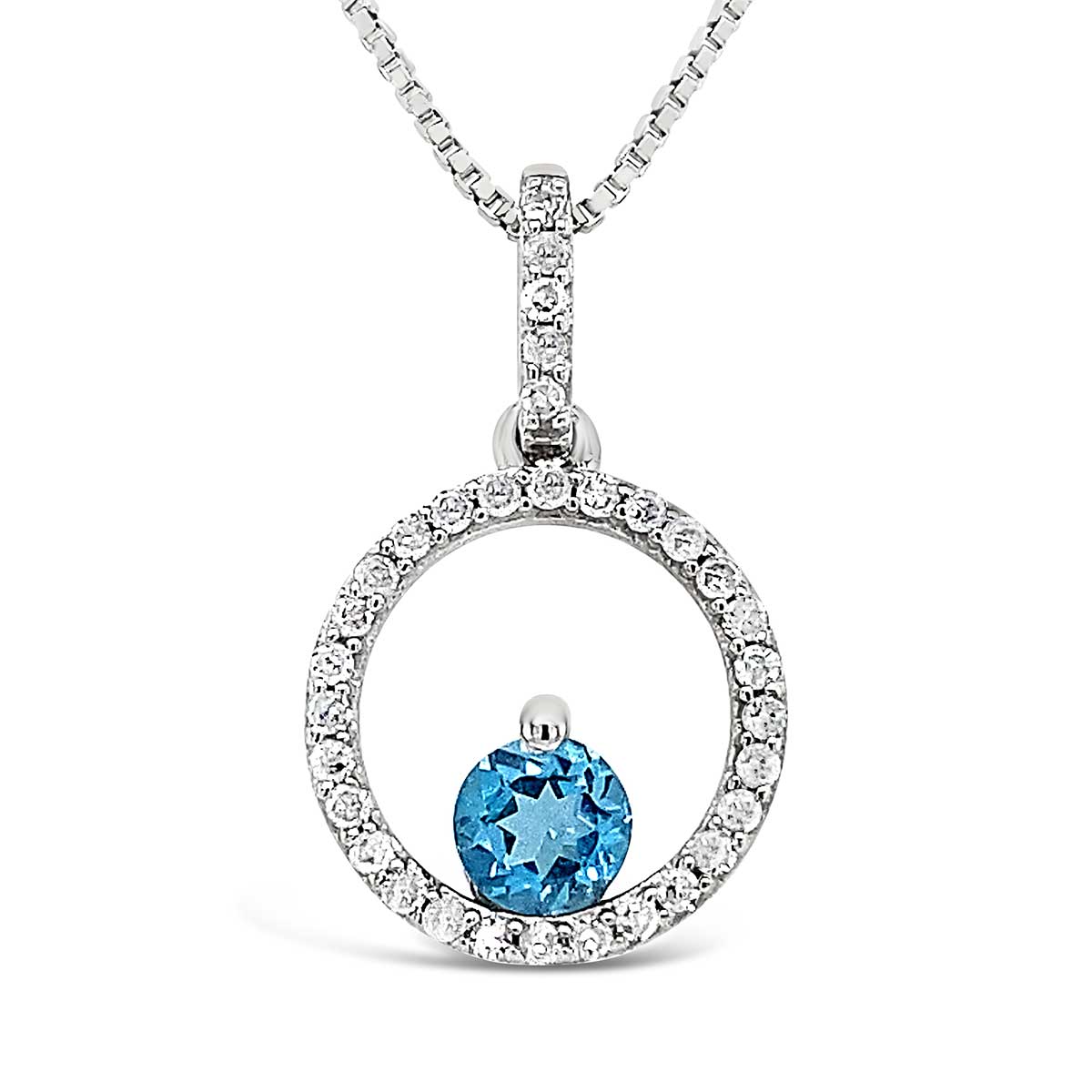 Sterling Silver Blue Topaz .15cttw Diamond Circle Pd With Box Chain