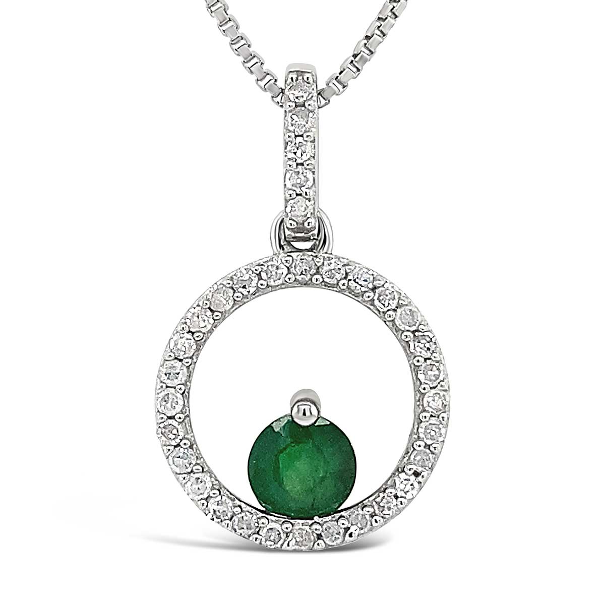 Sterling Silver Emerald .15cttw Diamond Circle Pd With Box Chain
