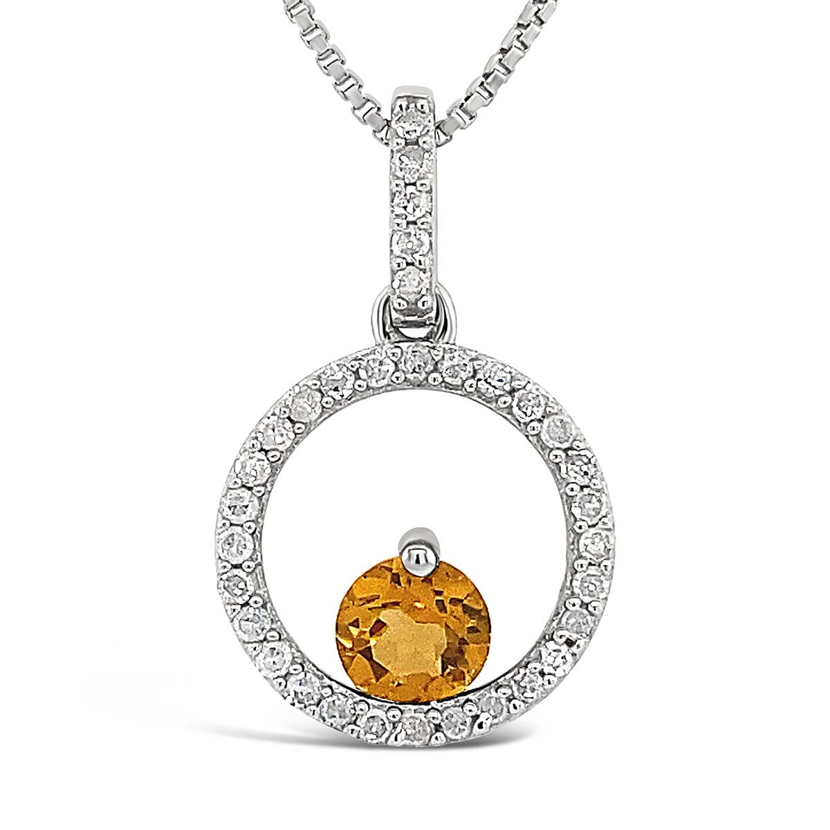 Sterling Silver Citrine .15cttw Diamond Circle Pd With Box Chain