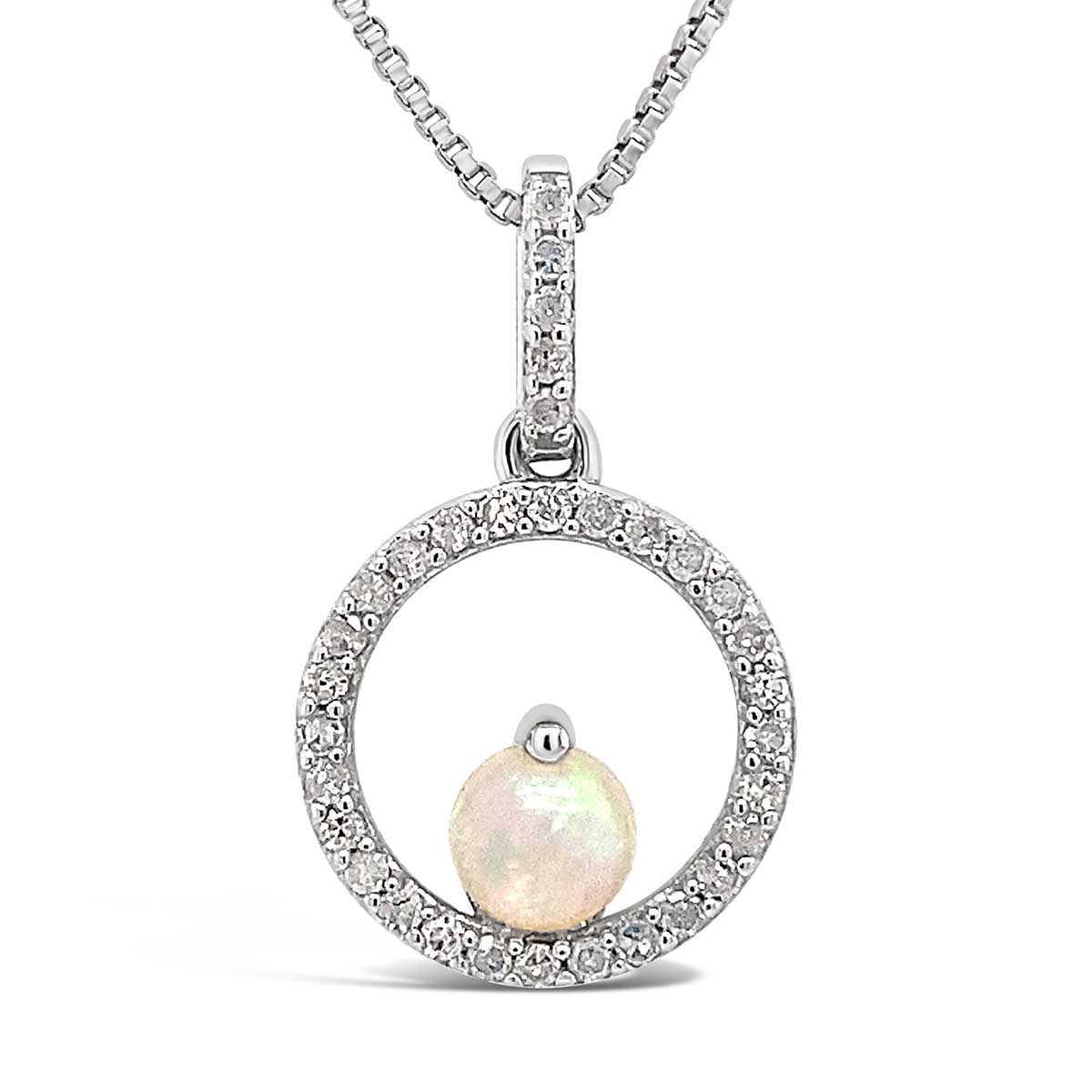 Sterling Silver Opal .15cttw Diamond Circle Pd With Box Chain