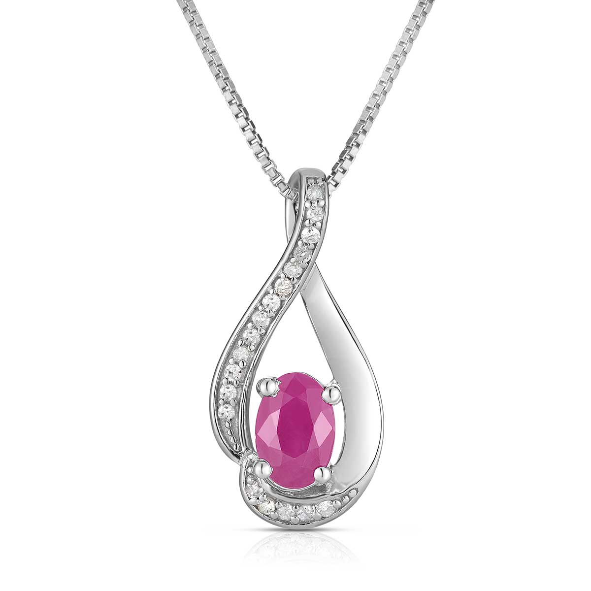 Sterling Silver Ruby 6x4mm & .08ctw Diamond Swirl Pendant With Box Chain