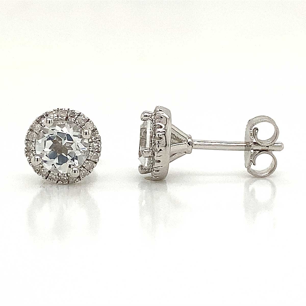 Sterling Silver White Topaz & .15ctw Diamond Halo Earrings