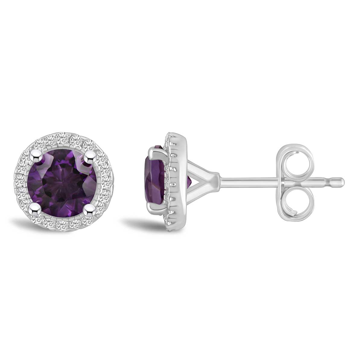 Sterling Silver Amethyst & .15ctw Diamond Halo Earrings