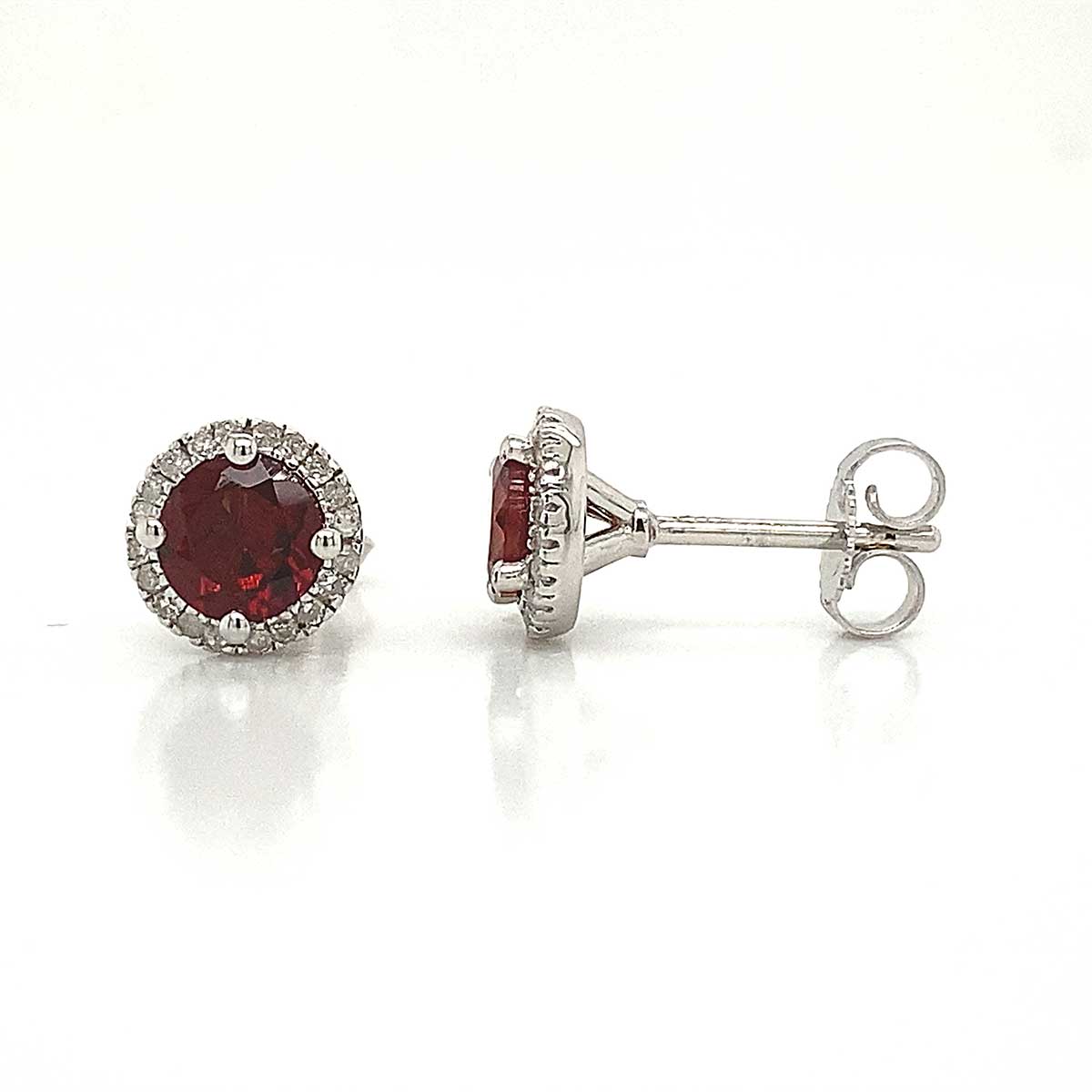 Sterling Silver Garnet & .15ctw Diamond Halo Earrings