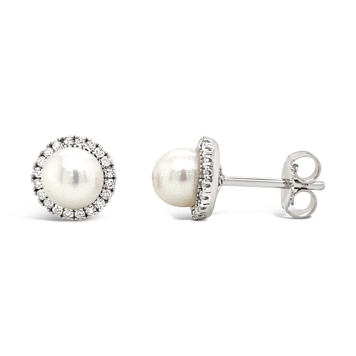 Sterling Silver Pearl & .15ctw Diamond Halo Earrings