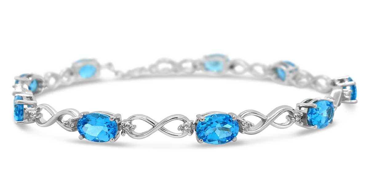 Sterling Silver Blue Topaz Oval & .085ctw Diamond Infinity Bracelet