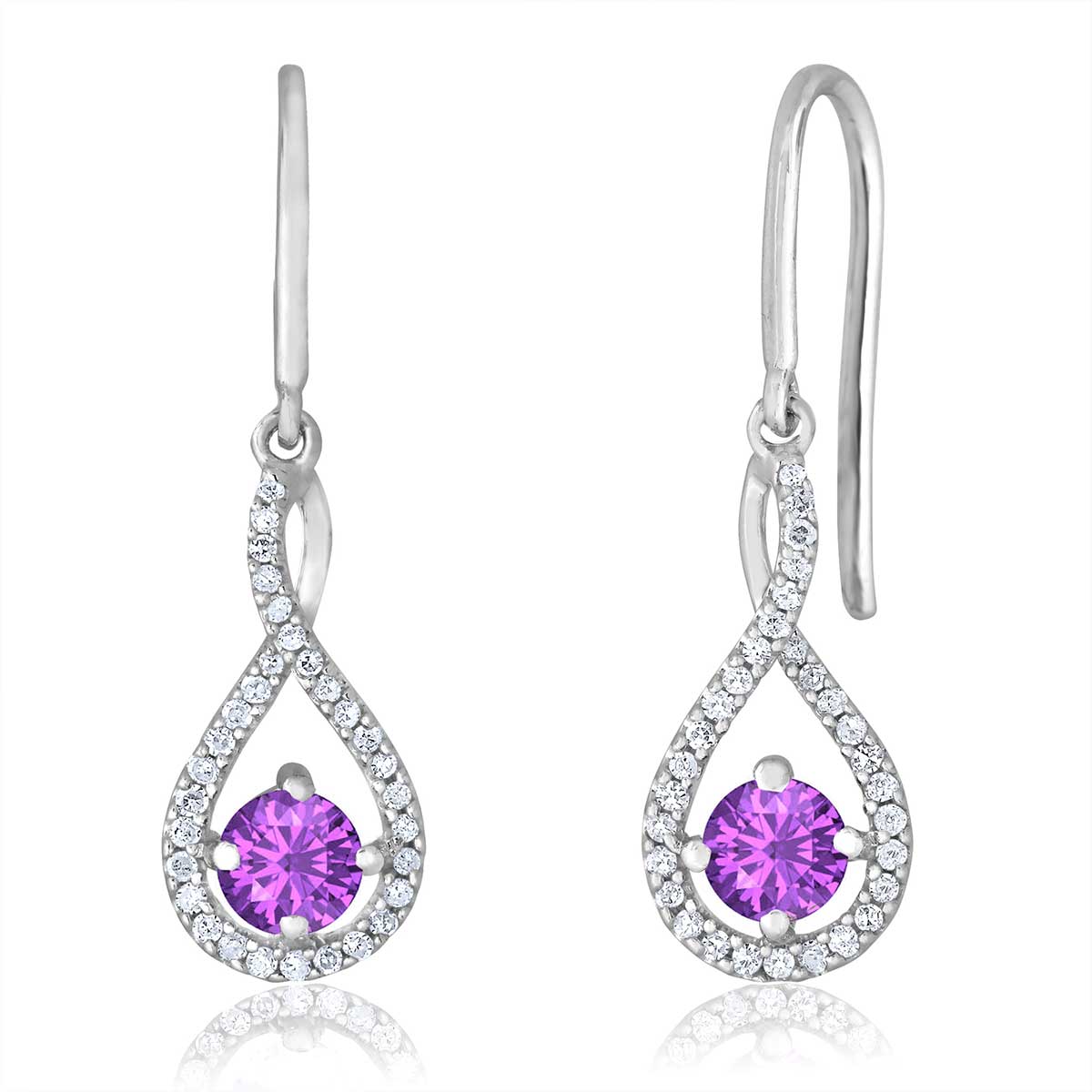 Sterling Silver Amethyst & .20cttw Diamond Birthstone Infinity Earrings