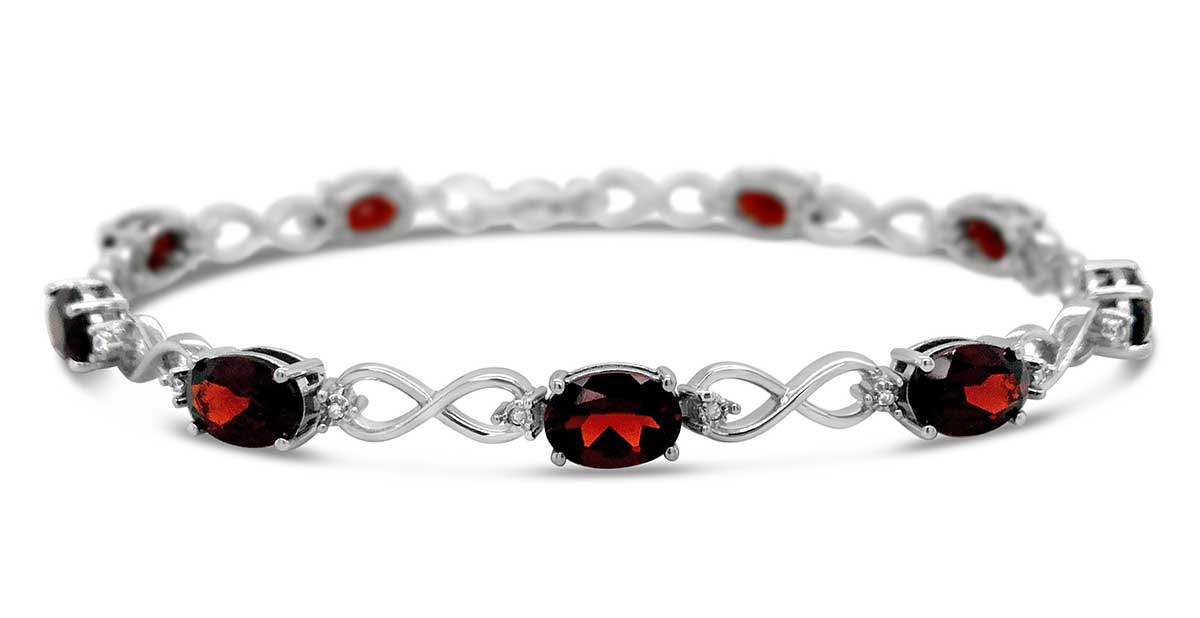 Sterling Silver Garnet Oval & .085ctw Diamond Infinity Bracelet