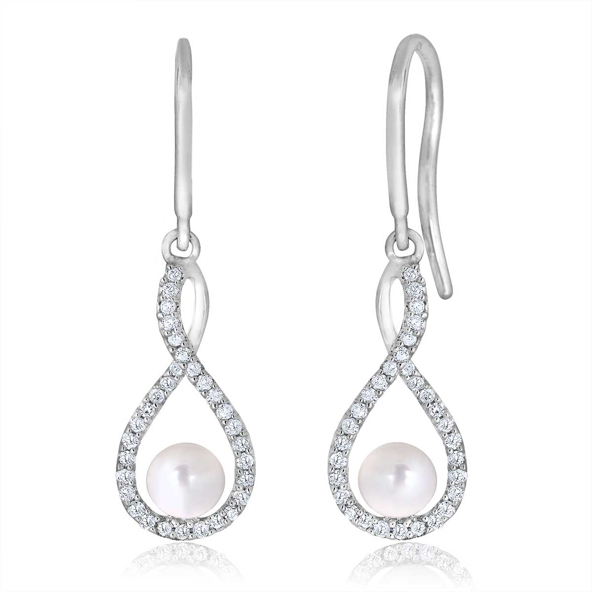 Sterling Silver Pearl & .20cttw Diamond Birthstone Infinity Earrings