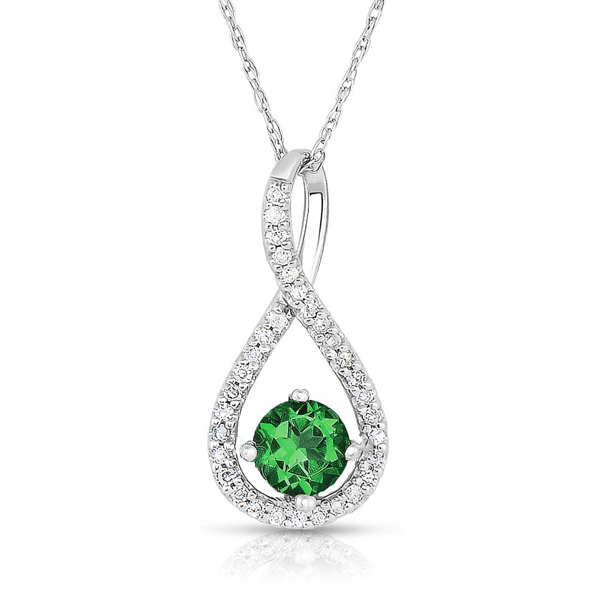 Sterling Silver Emerald & .10ctw Diamond Infinity Pendant With Box Chain