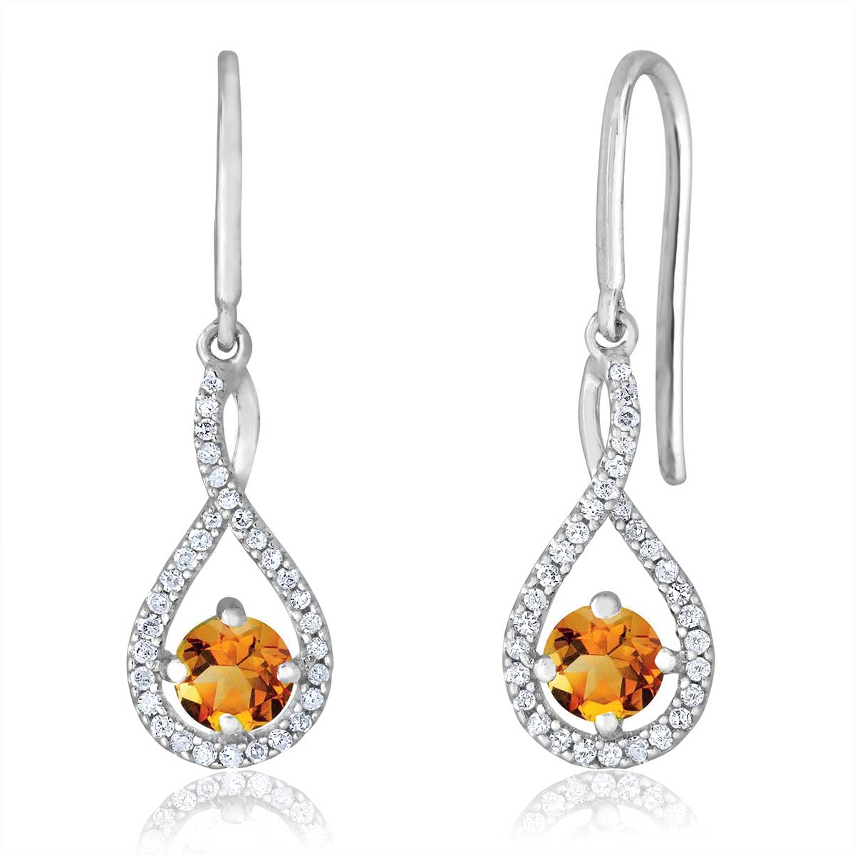 Sterling Silver Citrine & .20cttw Diamond Birthstone Infinity Earrings