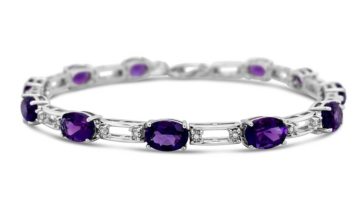 Sterling Silver Amethyst Oval & .12ctw Diamond Bracelet