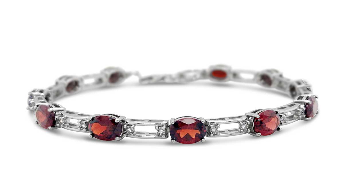 Sterling Silver Garnet Oval & .12ctw Diamond Bracelet